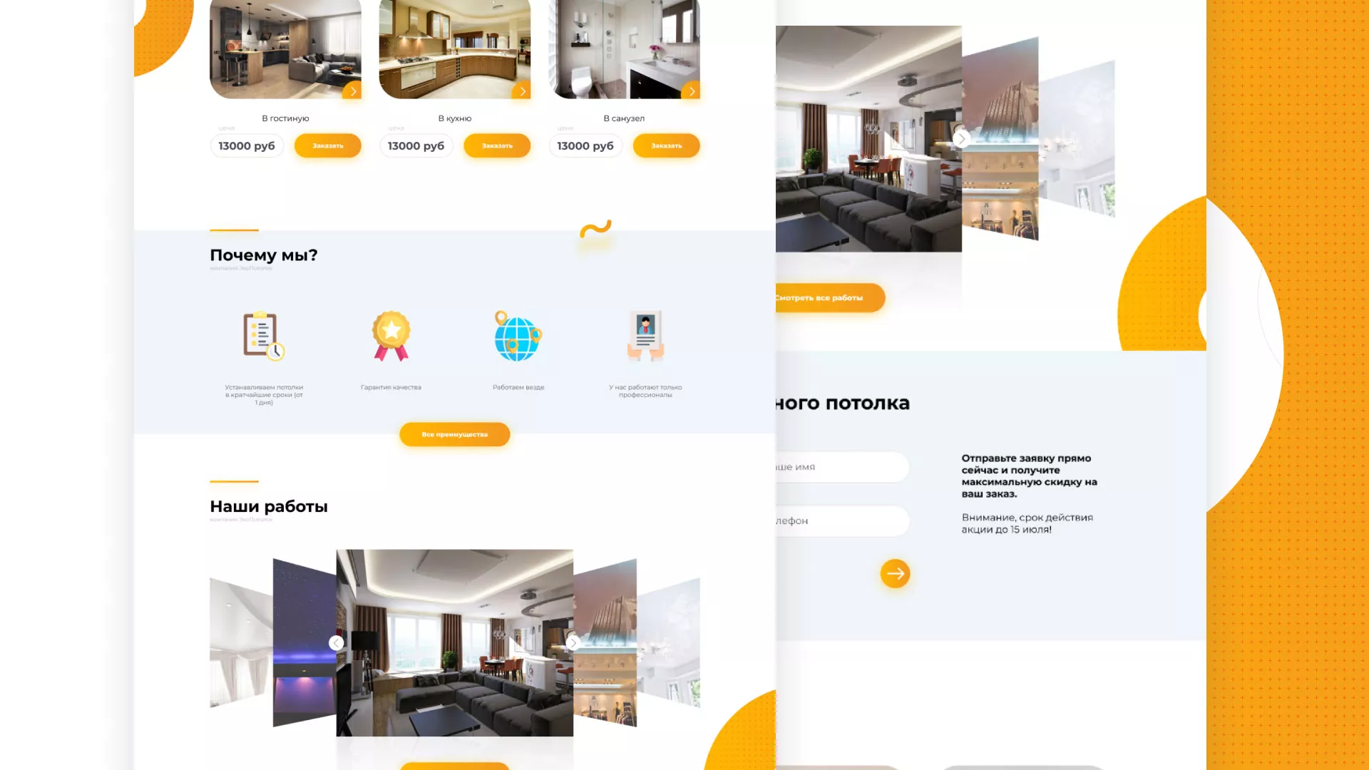 В нашем портфолио в Белоярском Вы можете найти большое количество вариантов готовых сайтов, среди которых есть и сайты по натяжным потолкам. Все проекты выполнены с учётом пожеланий заказчиков, многие из которых стали нашими друзьями.